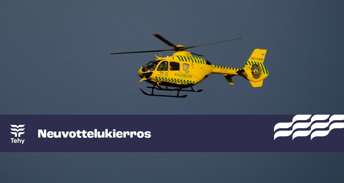 FinnHEMS Lentopalvelut Oy:n, FinnHEMS Oy:n ja Tehy ry:n välinen työehtosopimus on voimassa 30.4.2026 asti. Sopimuksen piirissä on tehyläisiä HCM-ensihoitajia ja ensihoitajia.